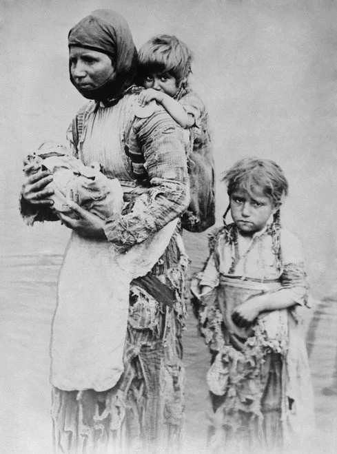 This image, while stark, captures not only the weight of poverty and discrimination faced by Romani communities across Europe but also the deep familial bonds that endured through adversity. It is a testament to a mother's instinctive drive to shield and comfort, even when the world offers little support.