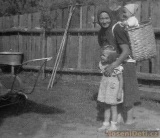 This rare historical photograph from Czechoslovakia shows a rural woman carrying her baby in a large woven basket on her back. Secured with sturdy shoulder straps, the basket allows the baby to sit upright and observe the world while the caregiver remains hands-free to work or care for other children. The baby, warmly wrapped with a bonnet, looks out contentedly, illustrating the creativity and resourcefulness of traditional carrying practices. The woman’s headscarf, apron, and practical clothing reflect the daily life of Central European village women in the mid-20th century. This image beautifully highlights how babywearing has always adapted to meet the practical needs of families, keeping little ones close and secure in the heart of everyday life.