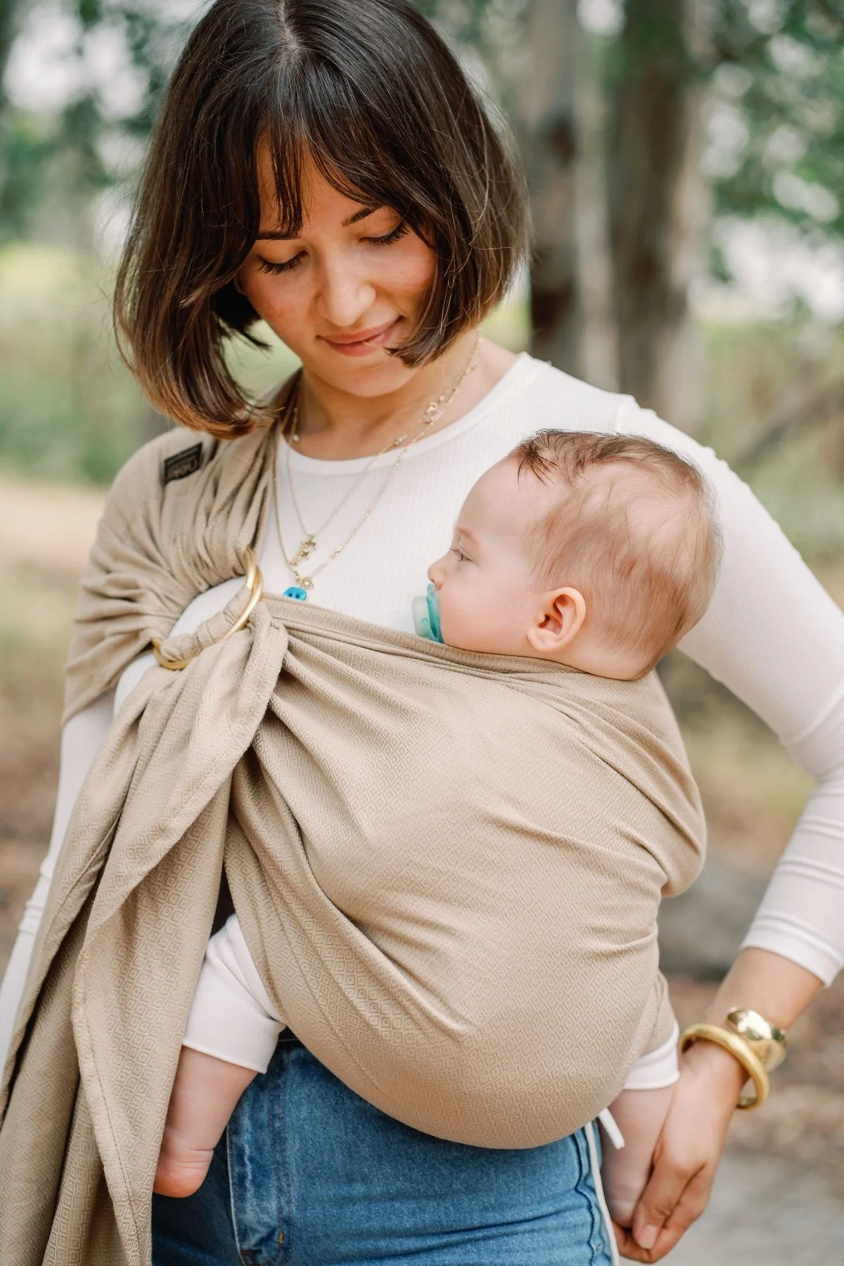 This sling has a luxurious wrap-like feel with strong, supportive structure. It’s easy to thread and adjust, making it practical even for wriggly or curious babies. A great choice for those who love the feel of a woven wrap but want something quicker to use.