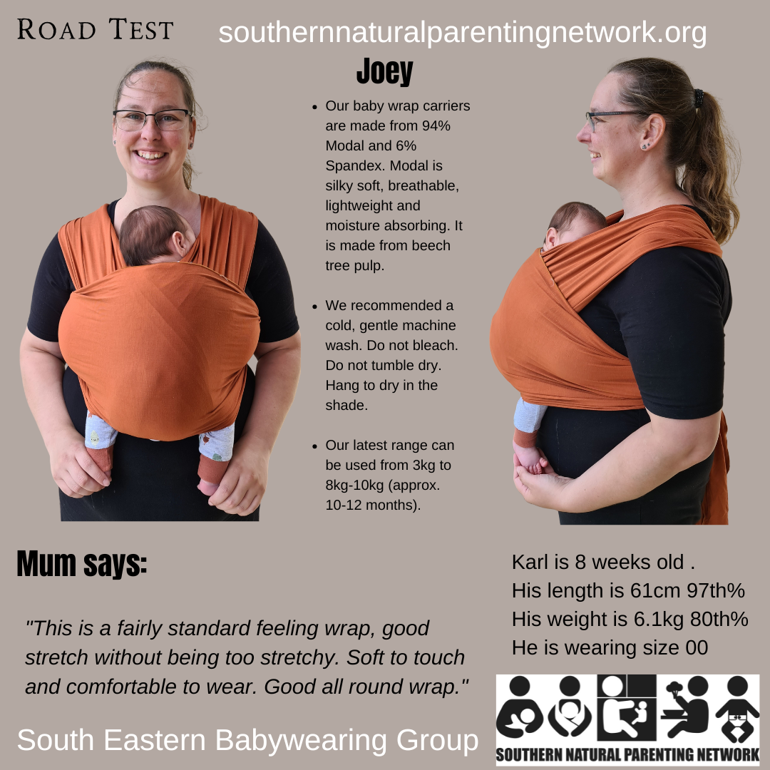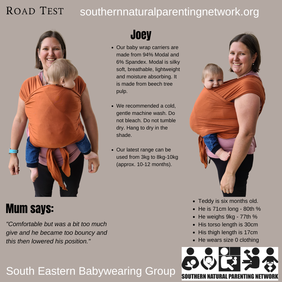 “Designed to support both you and your baby with soft, breathable, eco-friendly fabric, the Joey Baby Wrap gives your newborn the comfort of womb-like closeness while offering you hands-free connection from day one.”